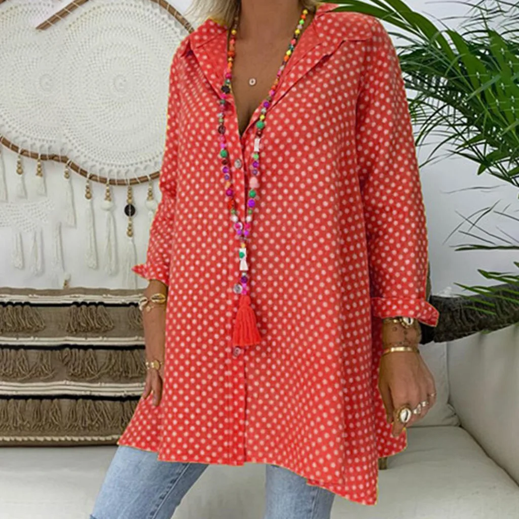 Beautiful Long Sleeve Polka Dot Print Tunic