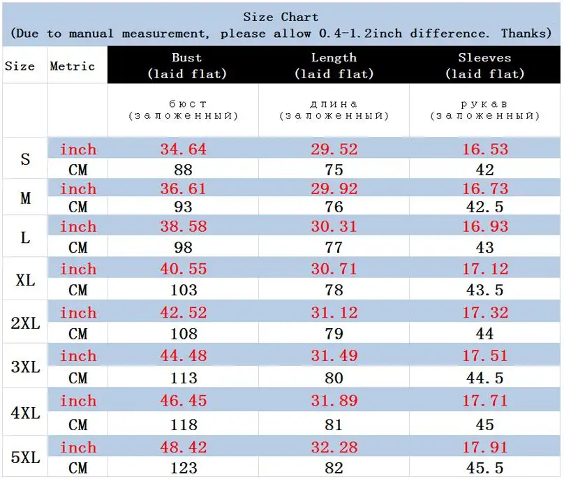 | Size | Medium, Large, XL, 2XL, 3XL, 4XL, 5XL |