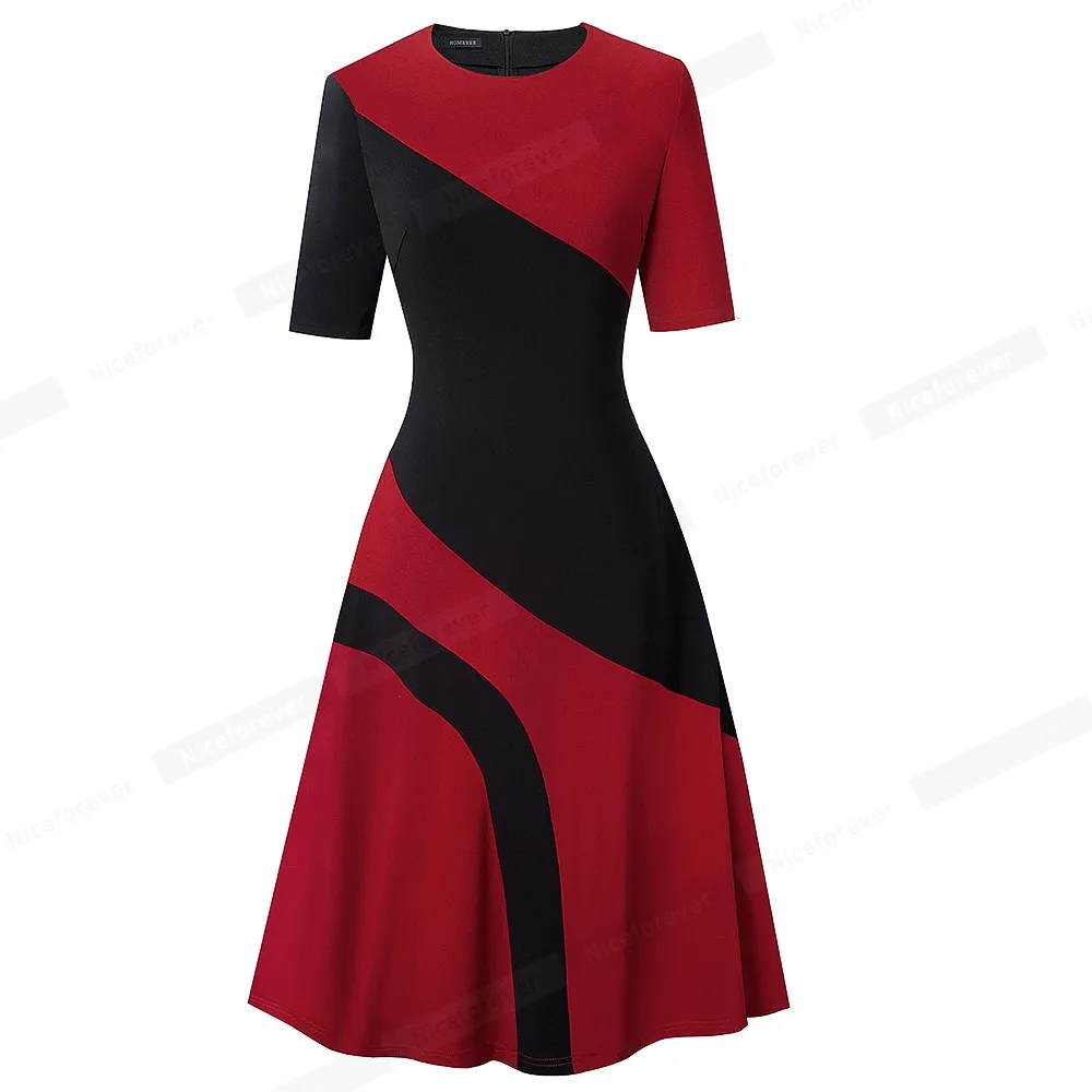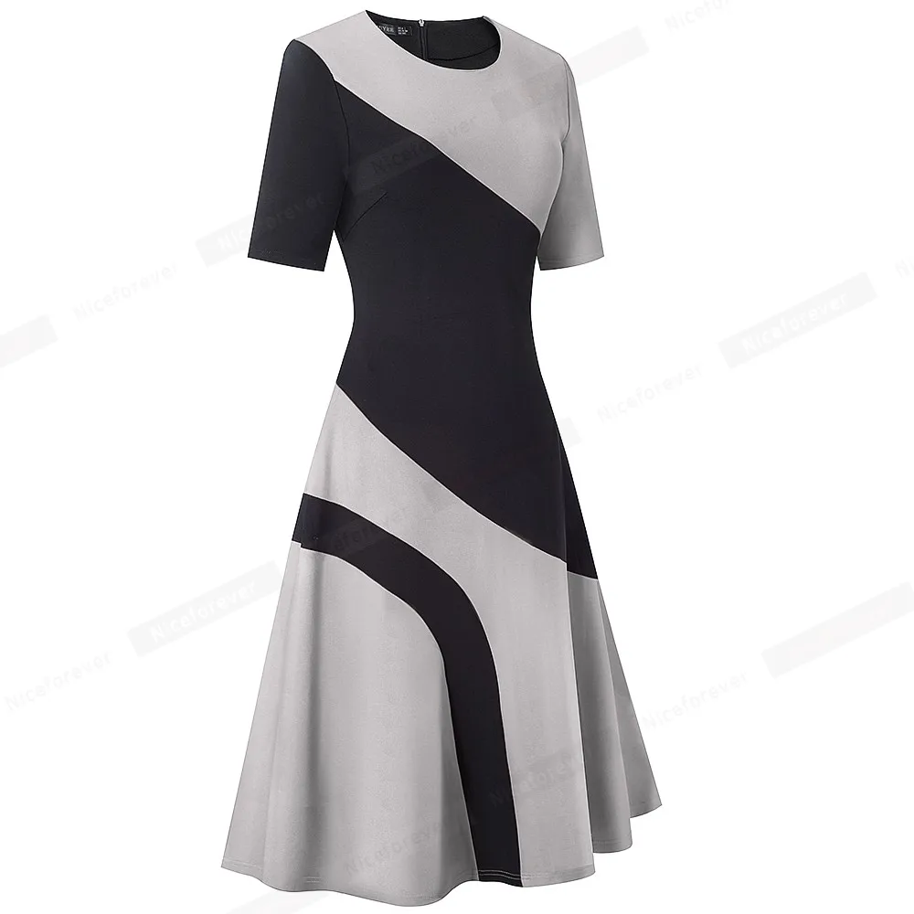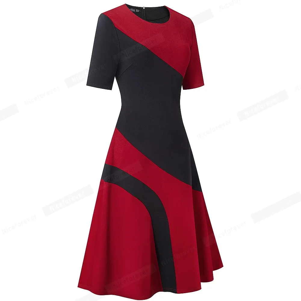 Delightful Retro Contrast Color Patchwork A-line Dress
