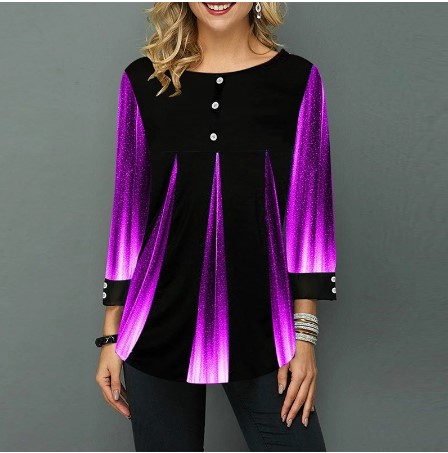 / Elegant Loose Casual Striped Long Sleeve Blouse