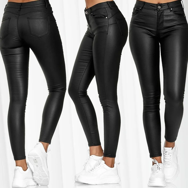 Exquisite Pure Color Skinny Pants Stretch Leather Pants
