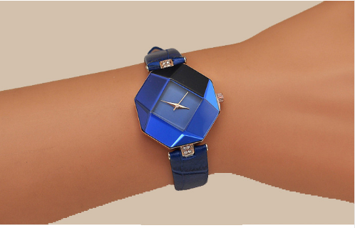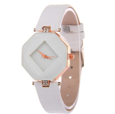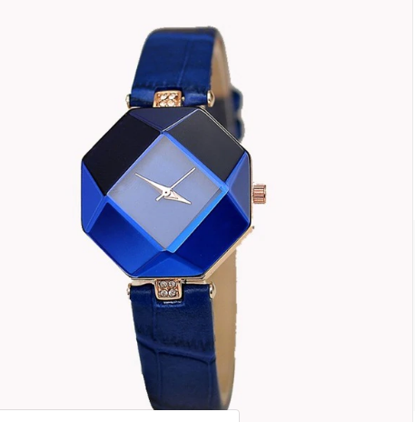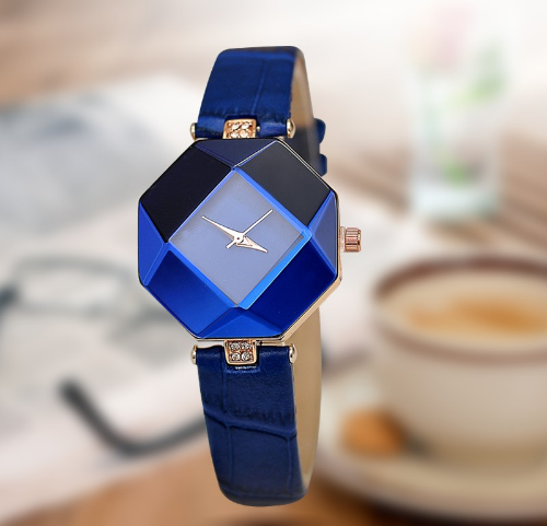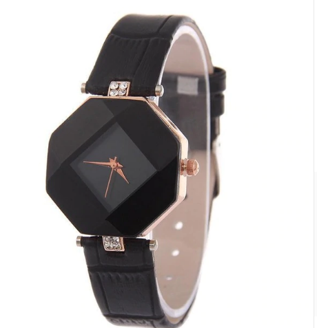 Gem Cut Geometry Crystal Leather Quartz Wristwatch