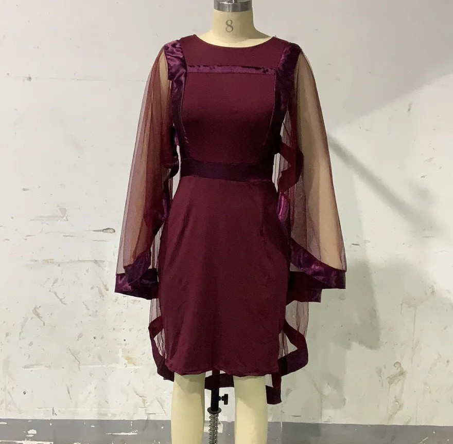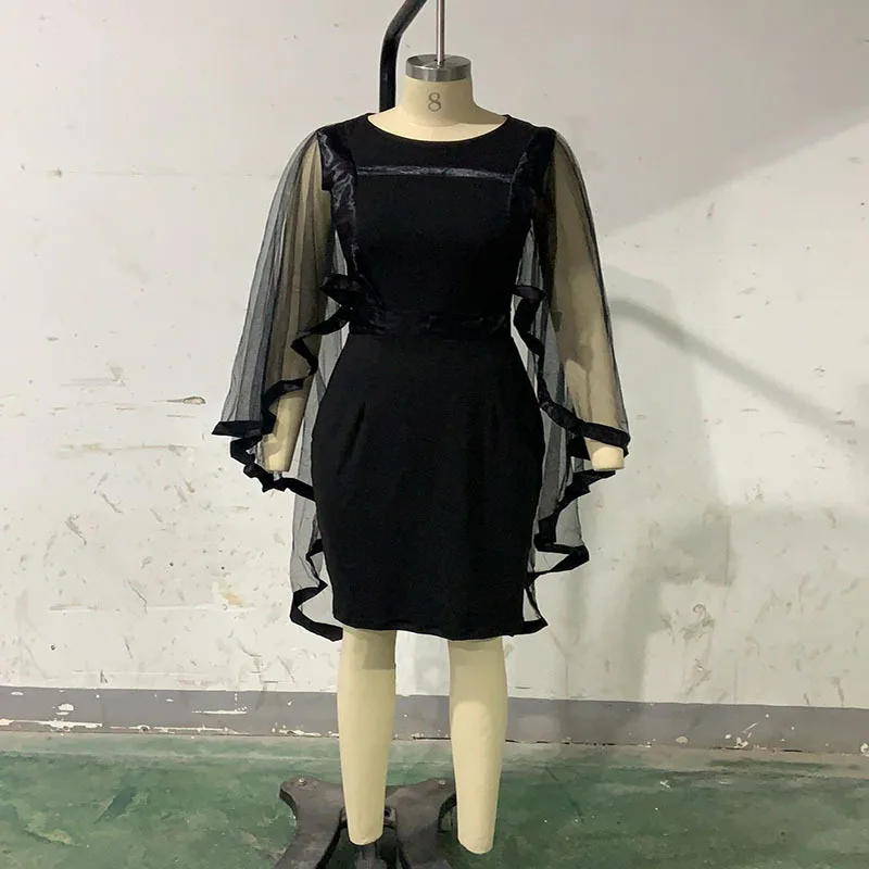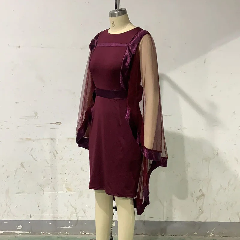 Glamorous Plus Size Slim Patchwork Mesh Dress