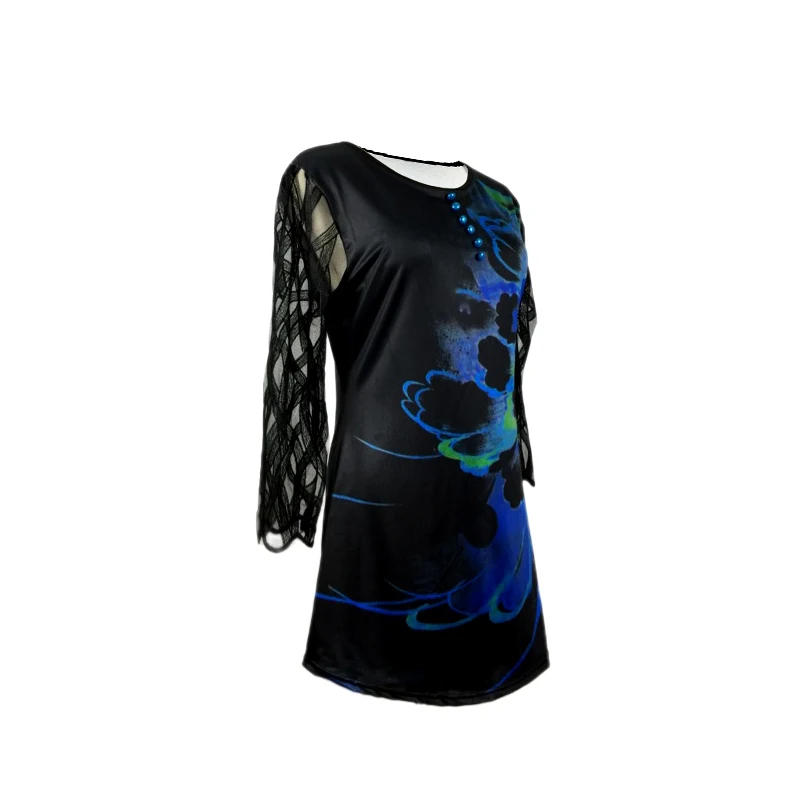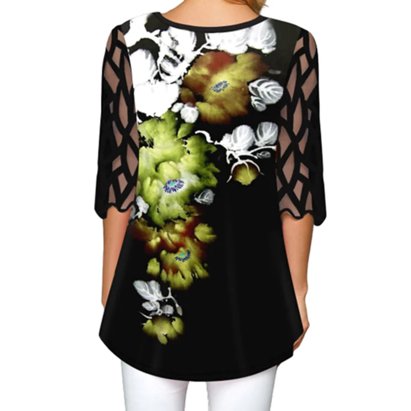 Gorgeous Floral Print Mesh Embroidery Tunic Top