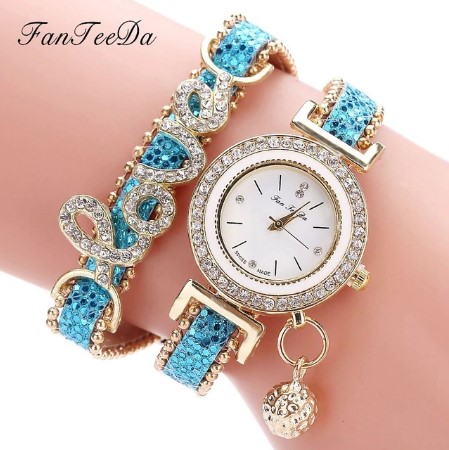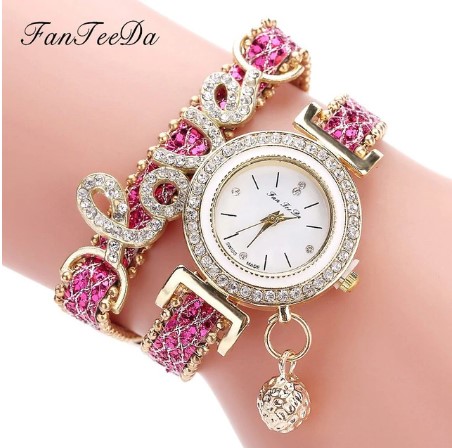 Gorgeous Love Leather Strap Rhinestone Quartz Wrist Watch