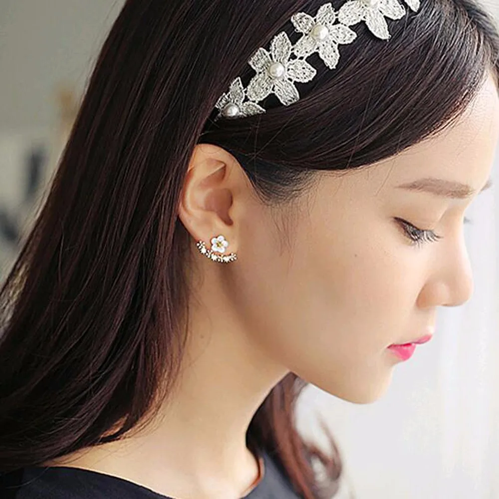 2016 Korean Fashion Imitation Pearl Earrings Small Daisy Flowers Hanging After Senior Female Jewelry Wholesale