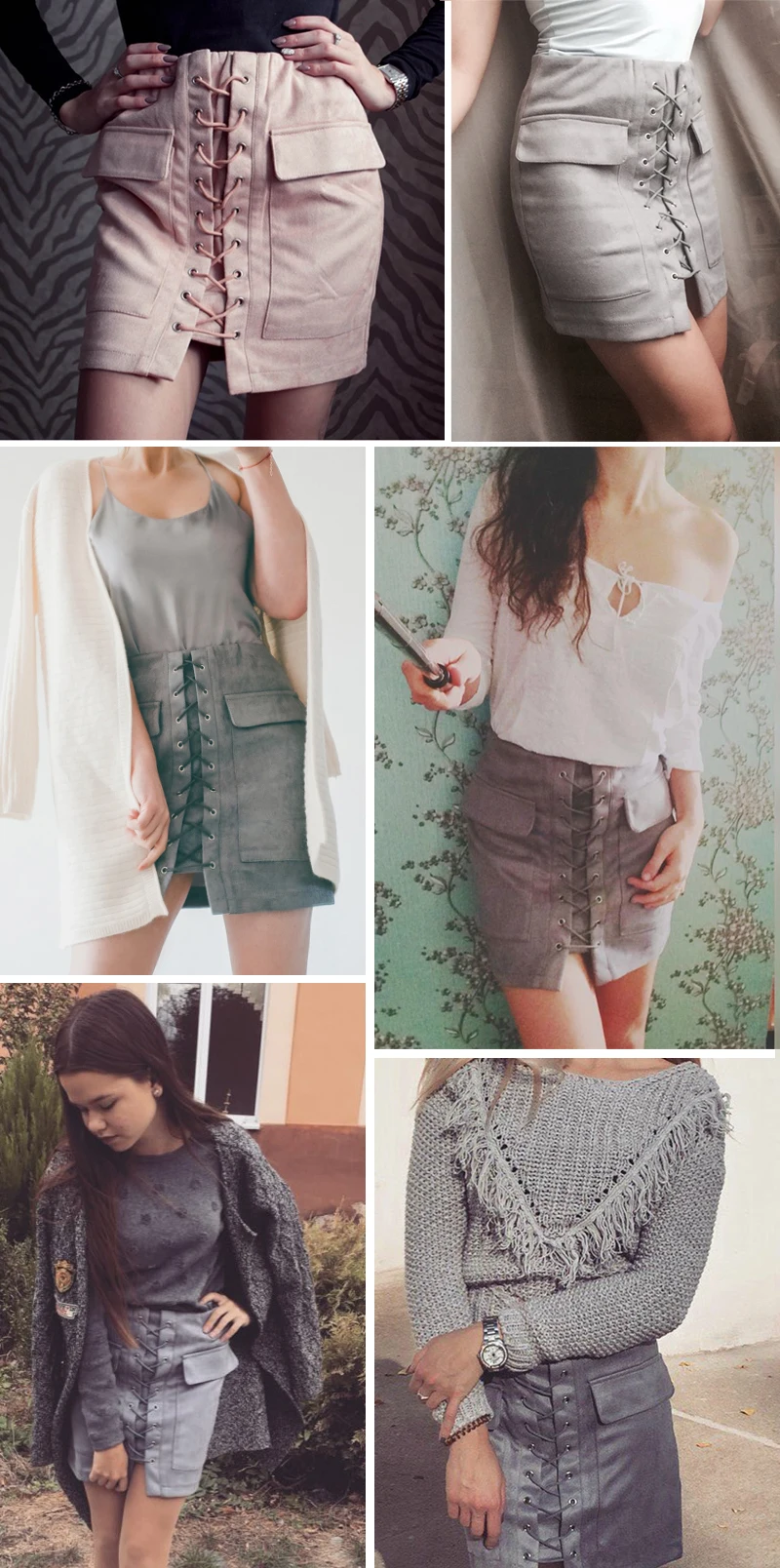 Simplee Apparel Autumn lace up suede leather women skirt 90’s Vintage pocket preppy short skirt Winter high waist casual skirts