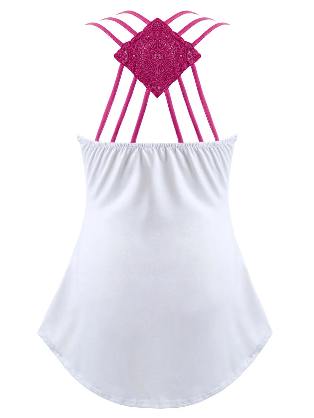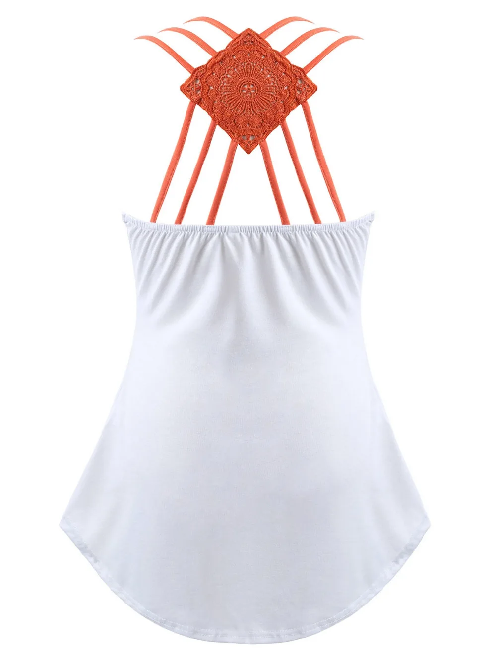 With artisans musician’ ecological temperament and elegant taste, this tank top is very cool for you to wear in the summer. Features multiple strappy design from shoulder to back and to join with crochet lace. Gentle warm and dramatic mood will surround you.