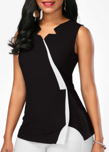 Patchwork Sleeveless Black Zipper Back Blouse