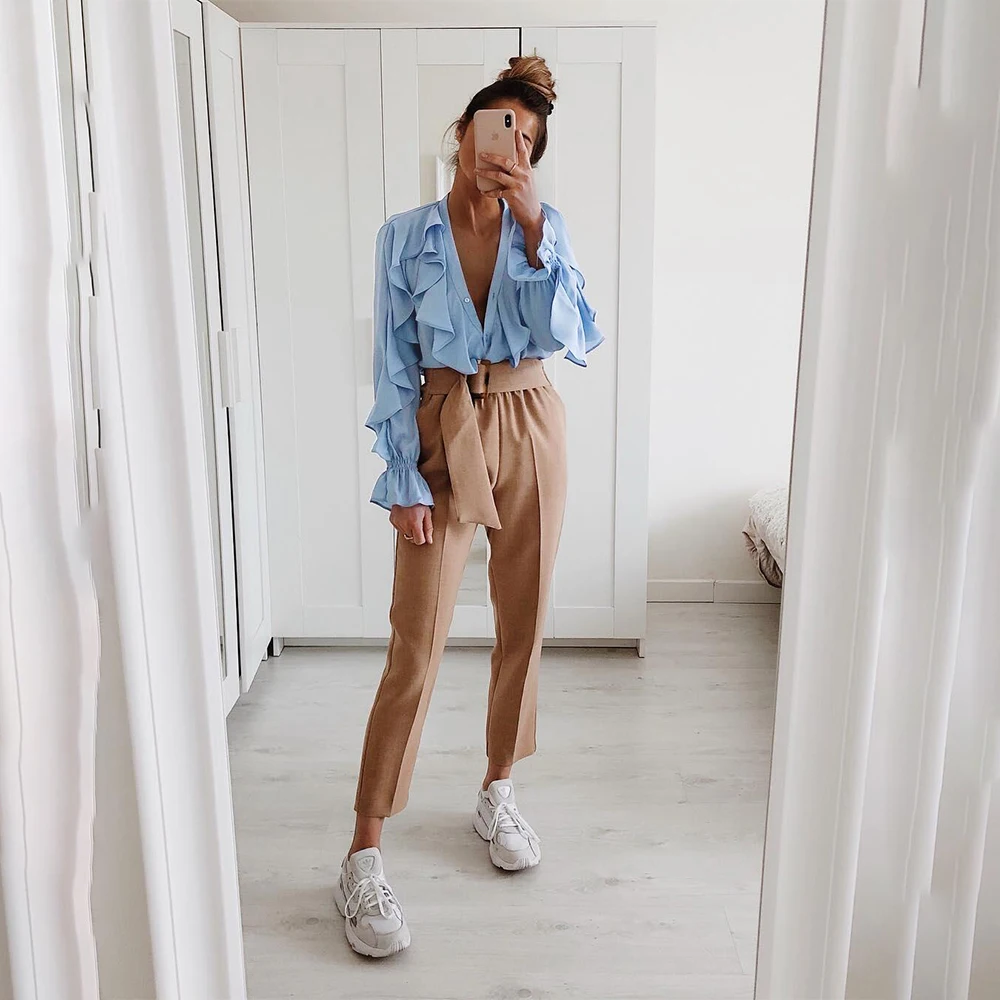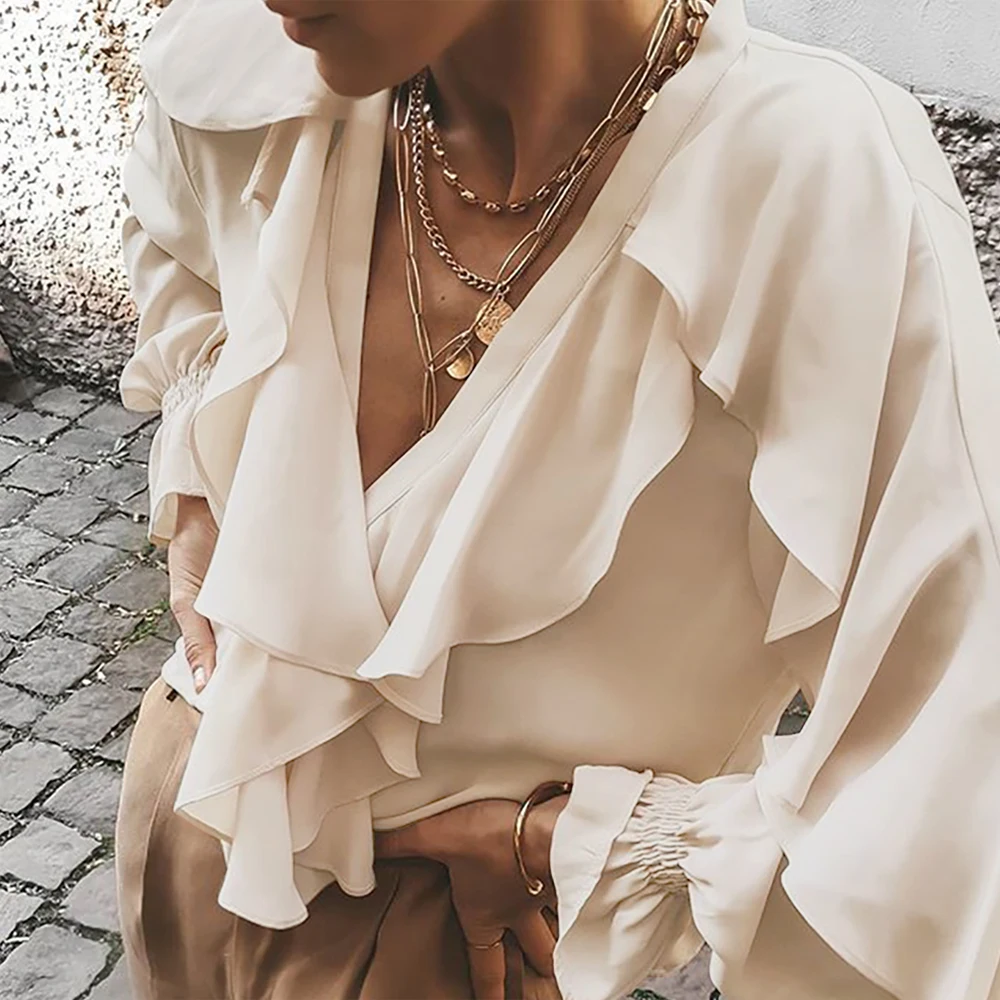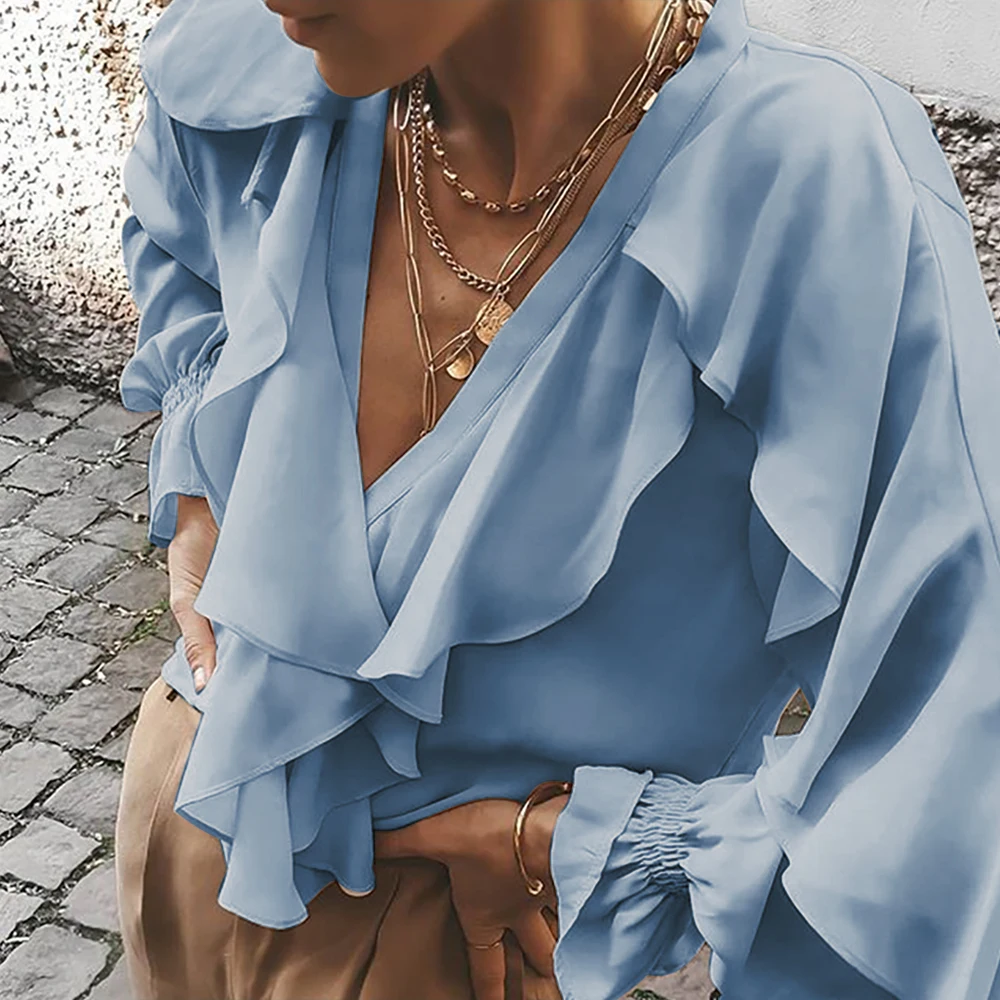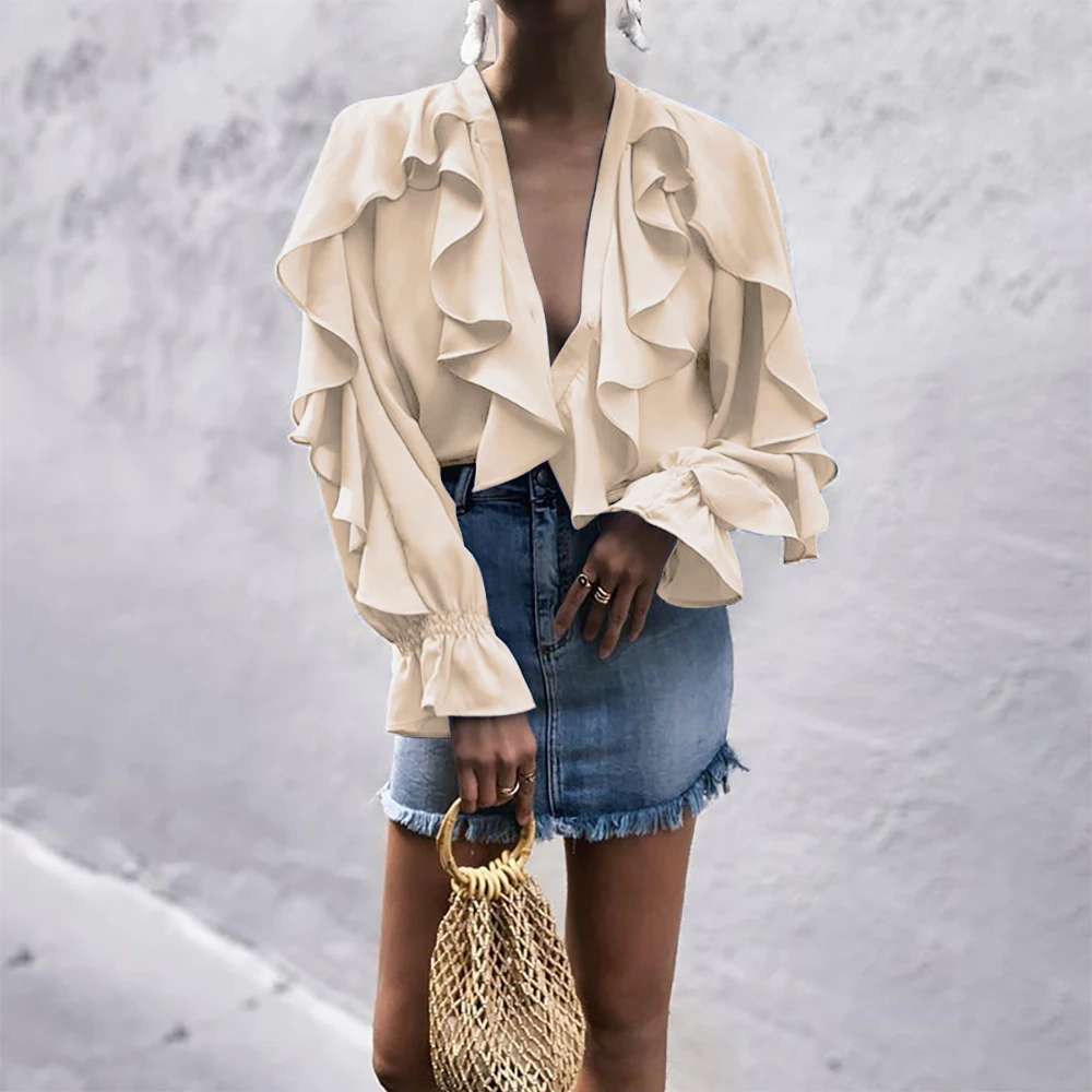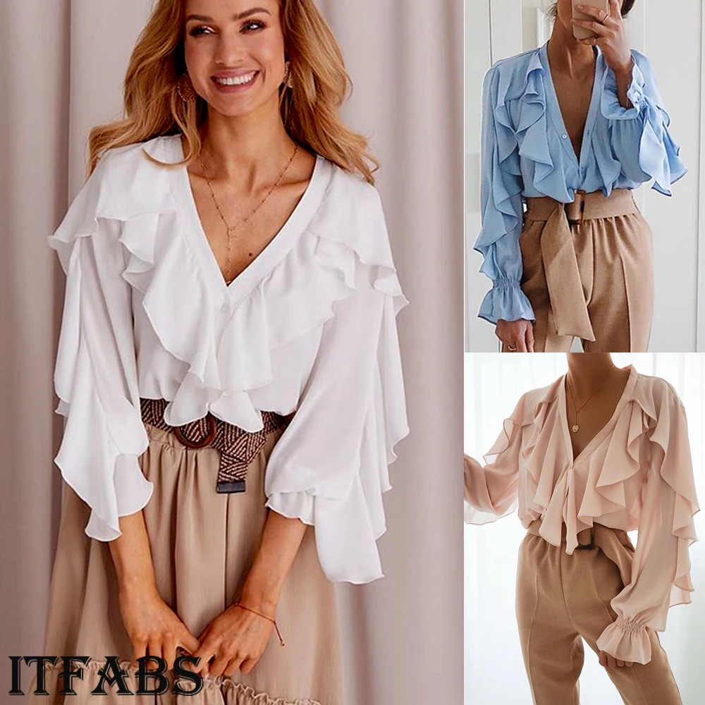 Striking Chiffon Ruffle Bell Sleeve Loose Blouse Top