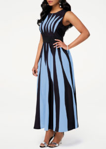 / Stripe Print Round Neck Sleeveless Pocket Dress