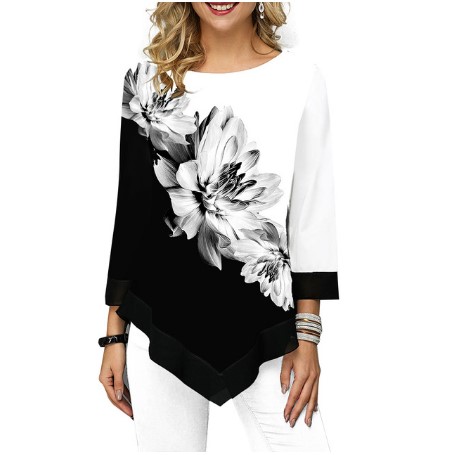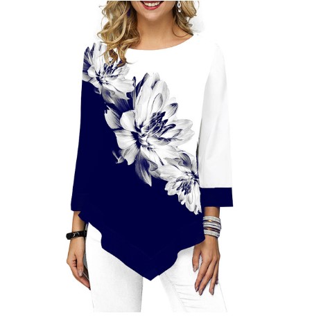 - Product Features:Features: Cropped sleeves, floral print, asymmetric hem, T-shirt