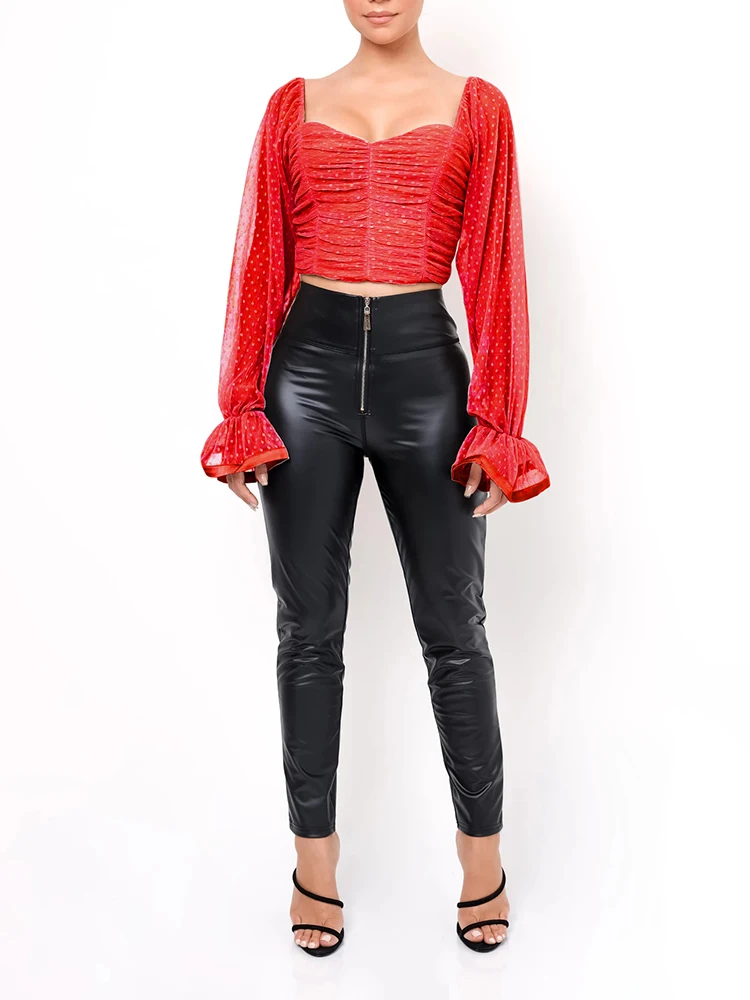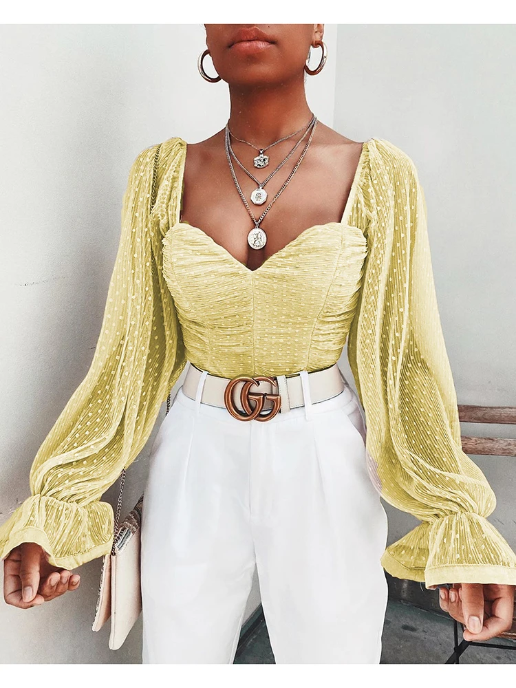 Sweet Puff Sleeve Ruffles Mesh Polka Dot Blouse