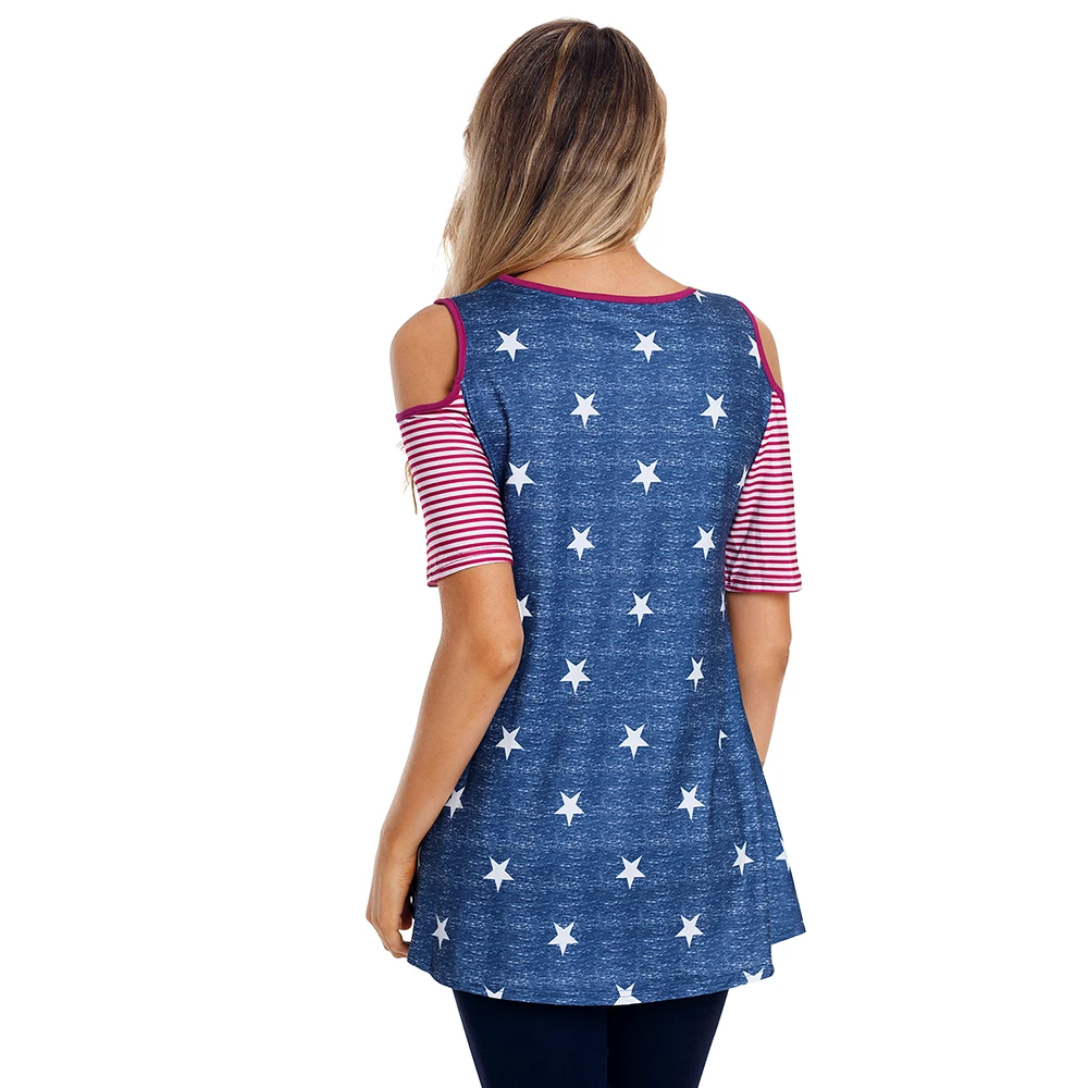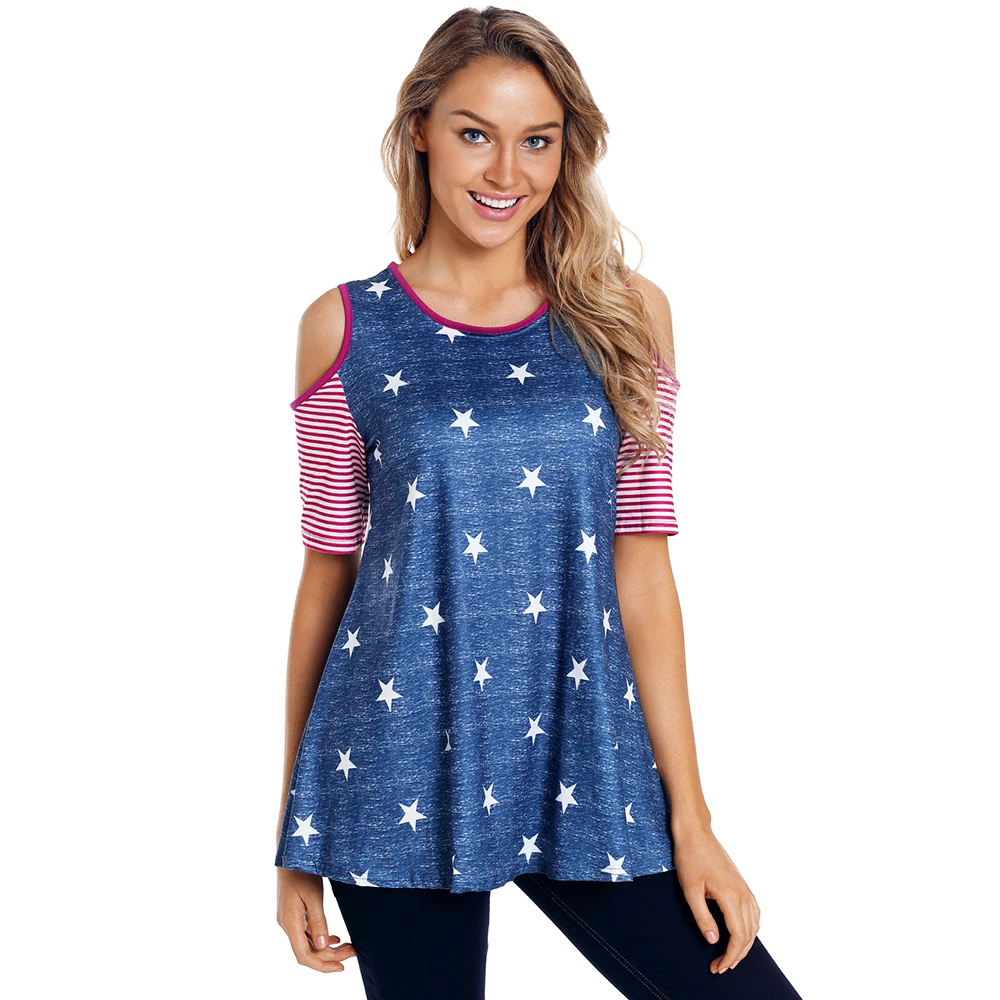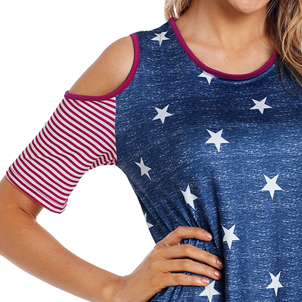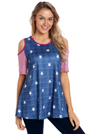 Unique Print Cold Shoulder Round Neck Blouse