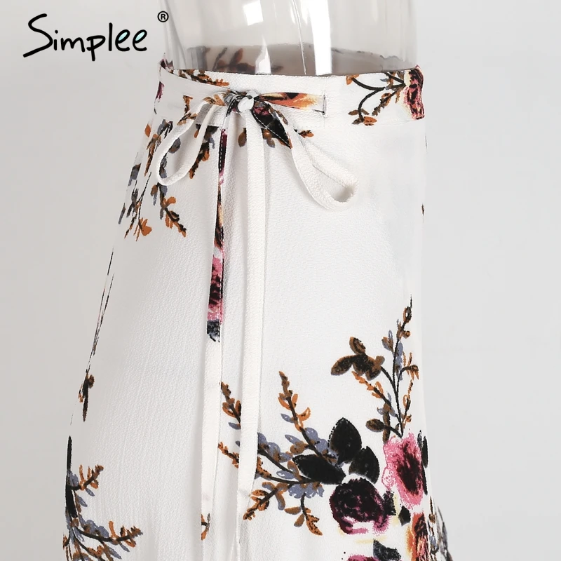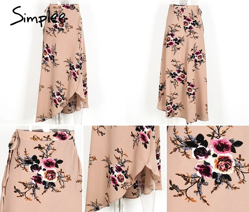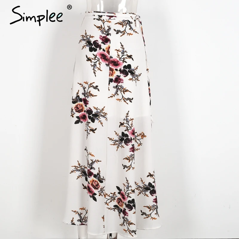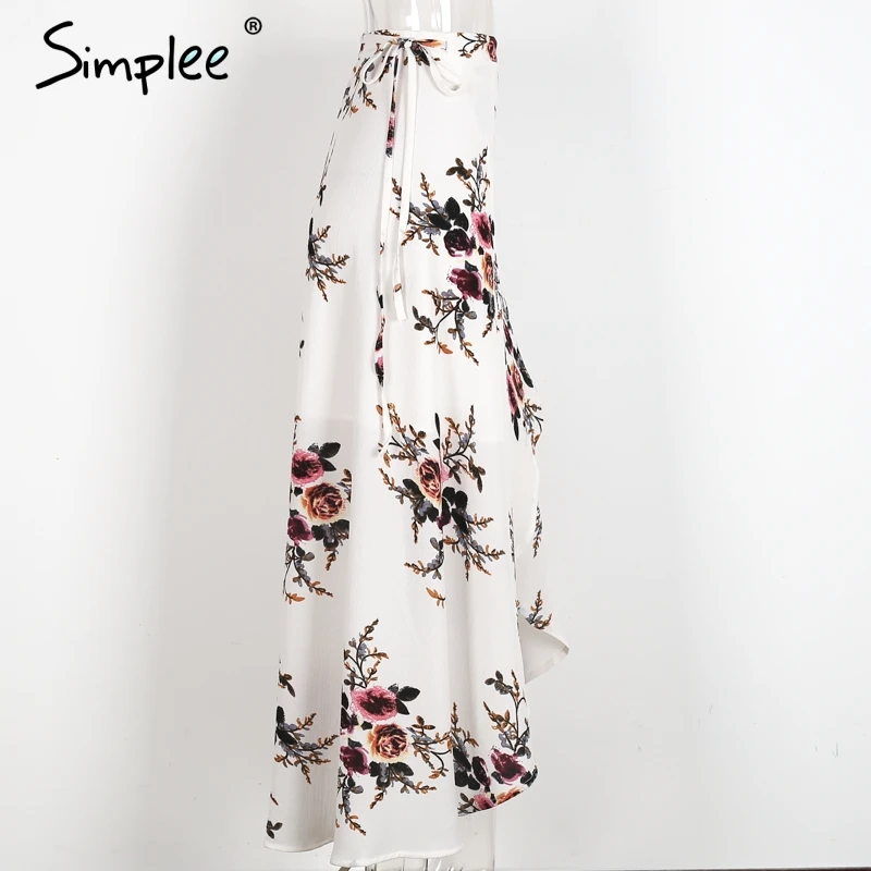 Simplee Vintage floral print long skirts women Summer elegant beach maxi skirt Boho high waist asymmetrical skirt